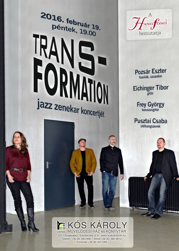 A Hangfonó sorozat keretében, 2016. február 19-én, péntek este 19-kor kezdődik a Trans-Formation koncertje Budakalászon, a Kós Károly Művelődési Házban.