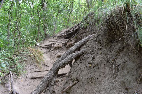 A túra útvonalon tovább haladva homokkőfal csábítja a kalandvágyókat a megmászásra, de továbbmenve az úton egyszerűbb utat is találhatunk: a fák gyökerei között, biztonságosabban is felkapaszkodhatunk, ahonnan szép kilátás tárul elénk a környékre.